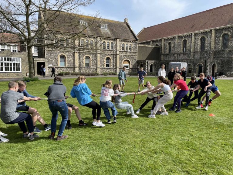 Zweimal pro Woche bieten wir außerdem verschiedene Sportaktivitäten an, darunter Volleyball, Fußball, Tennis, Hockey, Basketball, Schwimmen, Tischtennis und vieles mehr. Bei schönem Wetter bieten wir natürlich auch Schwimmen im Meer an, weil Dover und besonders Folkestone über schöne Strände verfügen. Auch abends stehen attraktive Programmpunkte zur Auswahl z.B. Bowling, Lasertag, Strandwanderung und natürlich unsere hauseigene Disco. Sonntags besteht die Möglichkeit, in die Kirche zu gehen, den großen Markt in Folkestone zu besuchen oder etwas mit der Gastfamilie zu unternehmen. Im Dover College können am Wochenende und abends alle Sportmöglichkeiten genutzt werden.